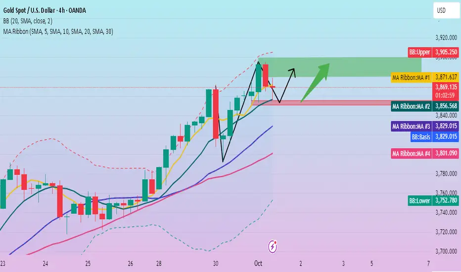 Buy at 3855-3850, with a stop loss at 3840. Target profit levels: 3880, 3890, 3900.