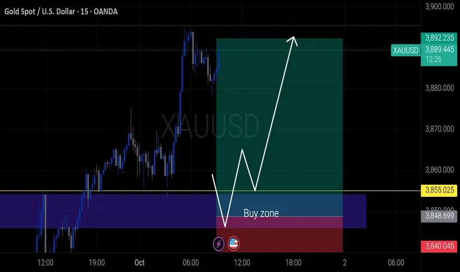 Price tapped into a strong demand zone near 3855, showing signs of a bullish reversal. Clean structure and potential for upside. Watch closely for confirmation and manage risk wisely.