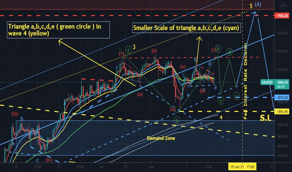 Gold still possible "any form" of triangle... Stay aside ..waiting for buy setup after the last wave of triangle which is "green circled" "e" wave formed..