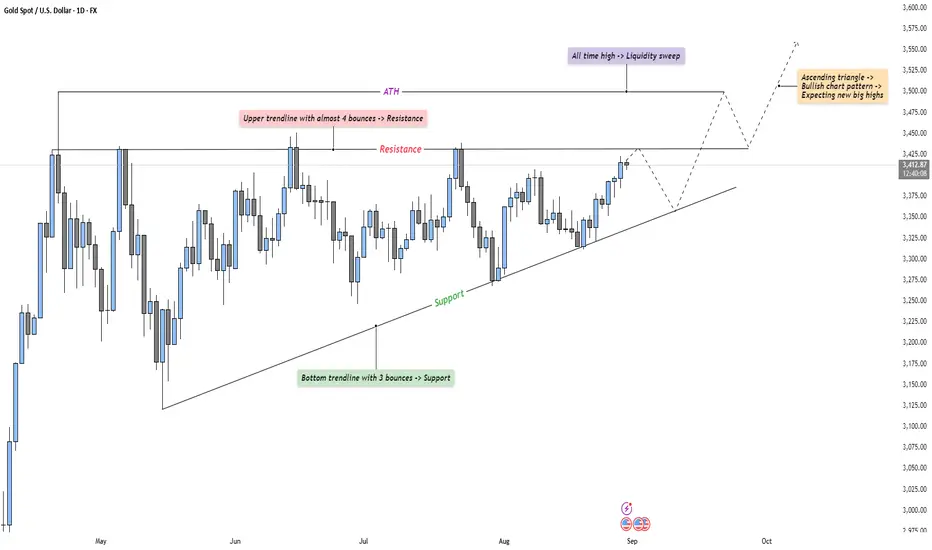 If price manages to break above resistance and sweep the all-time high, it would likely trigger a wave of liquidity from trapped shorts and breakout buyers entering. This move could fuel momentum into fresh price discovery, validating the ascending triangle as a bullish continuation pattern. The sweep of liquidity above ATH could serve as the catalyst for acceleration toward new highs.