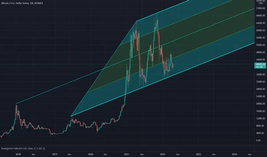 Interesting view of BTC and support resistance on a weekly chart using the pitchfork.