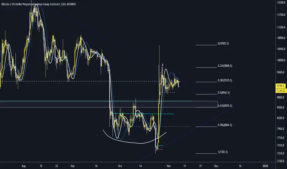 As far as targets go I am looking toward the white rectangle and the 0.618 retracement. What I would really like to see is for PA to take out the lows of that whole consolidation around the 8k region and quickly go back up - that would imply a liquidity run for the bigger players to fill in their longs to ultimately send BTC to 11k and beyond.