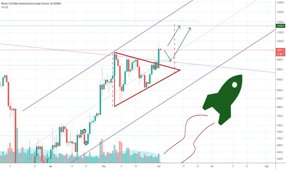 BTCUSD: Triangle break up! Next target: 11.300.