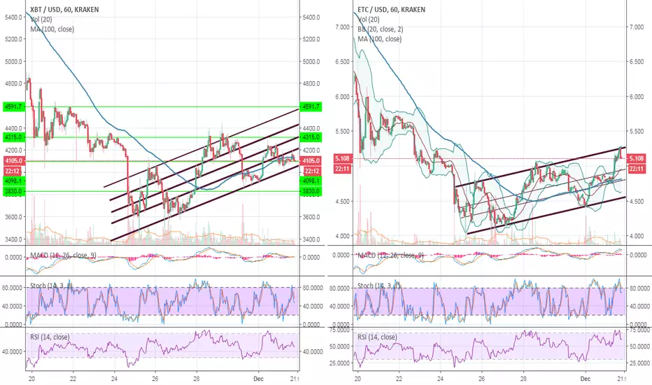 Also, ETC/BTC pair printed an 83+ on hourly RSI, and then could be forming a bearish divergence. Which conceivably gives ETC room to rest, and BTC room to bounce.