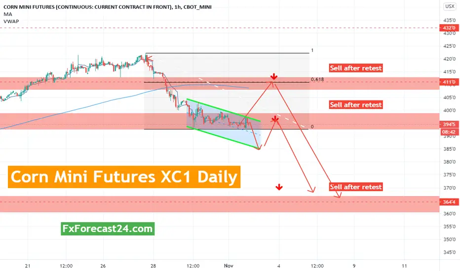Daily corn mini futures forecast and analysis : wait to sell corn mini futures