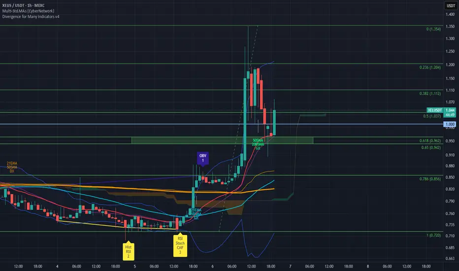 XEL #Xelis finding support above the 21 EMA on the lower timeframe, readying itself on a launchpad @ the golden pocket, before continuation.