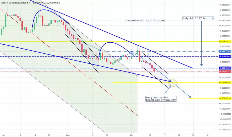 As expected the consolidation around 0.1000 broke downwards and a new very aggressive 4H Channel Down (oversold RSI = 21.923, STOCHRSI = 0, Williams = -98.798, Ultimate Oscillator = 21.489) has emerged. This is still trading within the wider 1W Falling Wedge pattern (MACD = -0.080, Highs/Lows = -0.0498, B/BP = -0.1070). Our ultimate TP is still 0.060 but if 0.055 breaks, then the Falling Wedge is crossed to the downside and a very aggressive bearish sequence will commence for XEMUSD. Updates will follow to cover this scenario.
