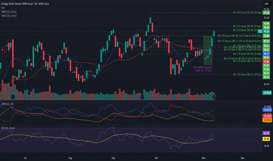 XLE above the level of the potential outside week noted on 7th November (i.e.: above the level of $89.75).