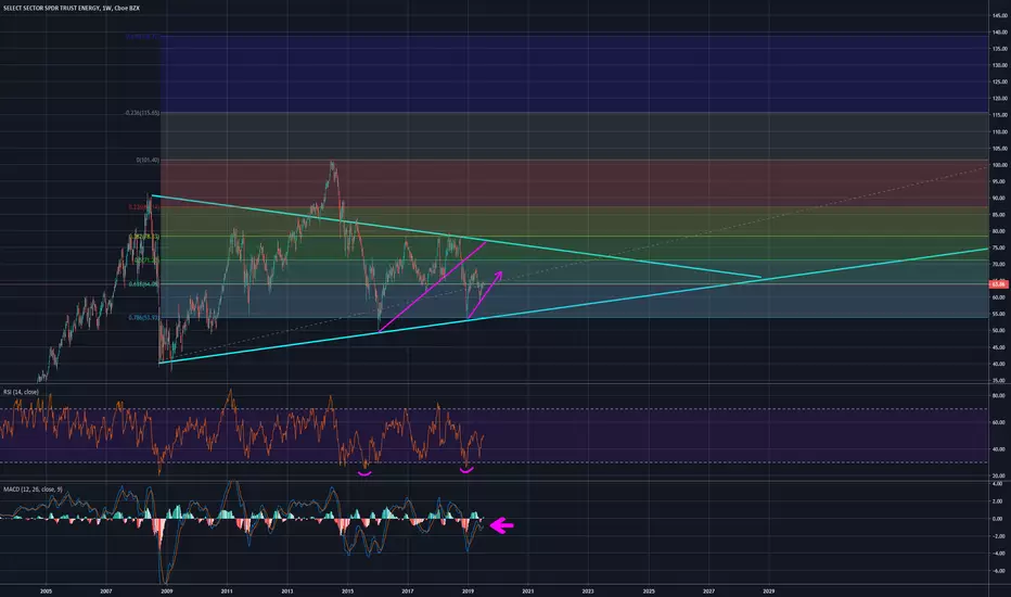 I like the RSI and MacD indications for a long portfolio position here. Natural gas and oil have been beat down enough that this looks interesting, a little dollar weakness wouldn't hurt either.