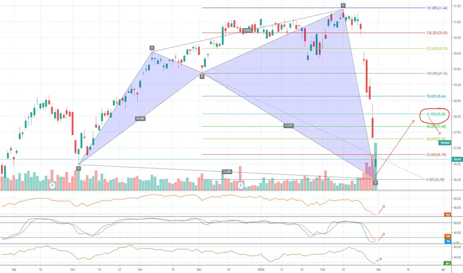 Oversold indicators, closed below Oct bottom , long-term weakness identified maybe due to more cutting of interest rates but now expecting bounce to 0.62 fib then falling again (+10%) or can be extended to 1.32% fib then drop but its not unlikely