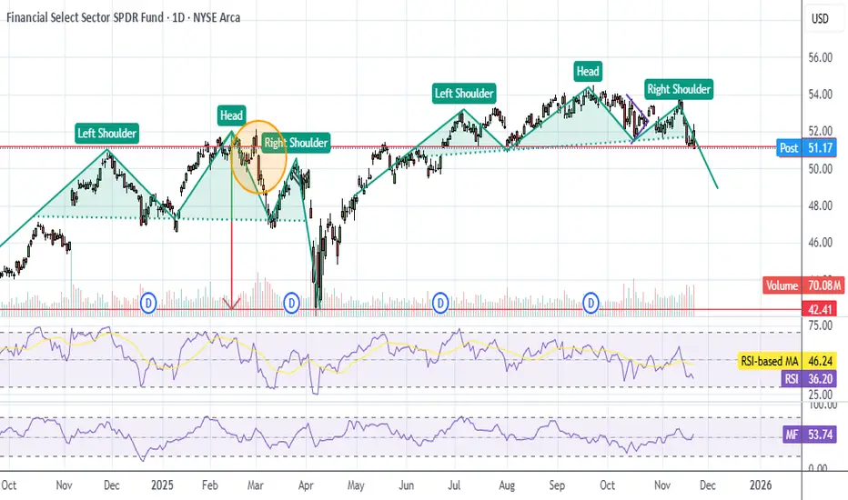 H&S on financials again. Didn't play it last time, made some money today and left the profits in next week's XLF puts.
