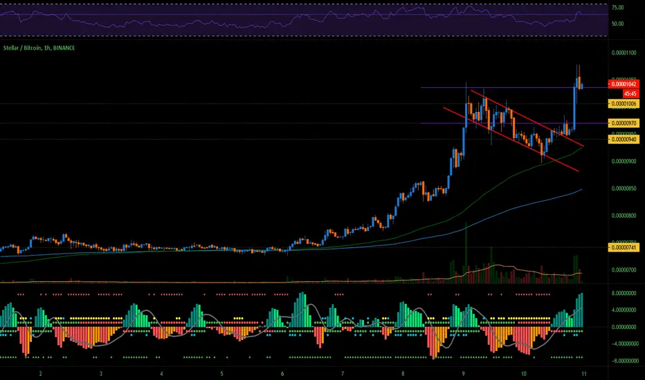 XLM, broke out a few days ago. Formed a flag, now breaking out.