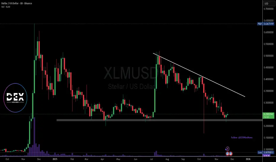 Stellar (XLM) sits near $0.248 after a sharp monthly pullback that pushed the token back into a major demand zone between $0.22–$0.20. This region has triggered three powerful rallies in the past—32%, 53%, and 138%—making it a critical psychological and technical level. With X-Ray now entering the spotlight under Protocol 25, traders are watching closely to see whether renewed fundamentals can fuel another upside reaction.