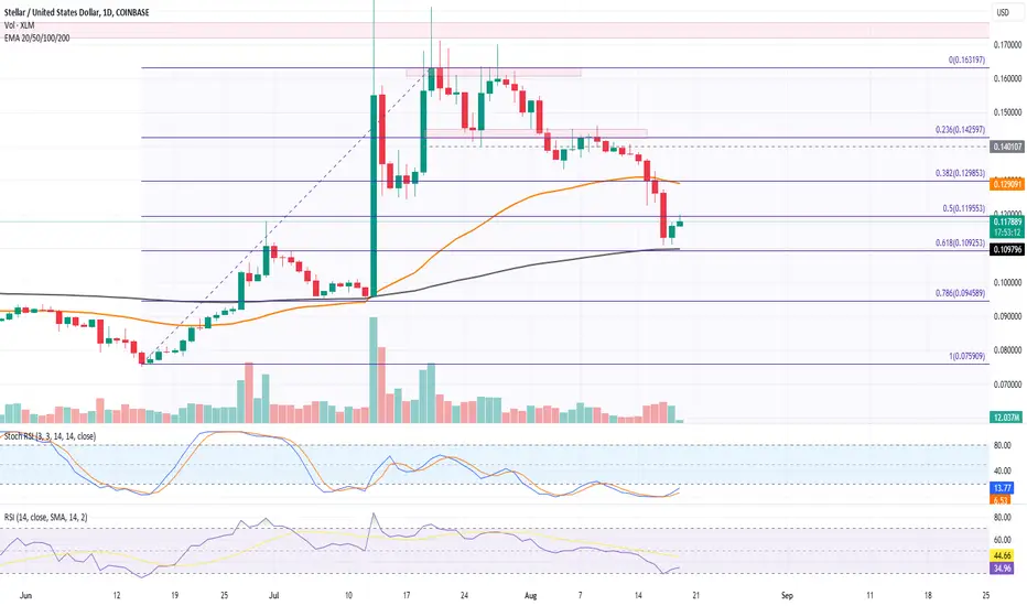 - Breach of Support Levels: XLM price breached multiple support levels, including the 50-day EMA and 50% Fibonacci level.