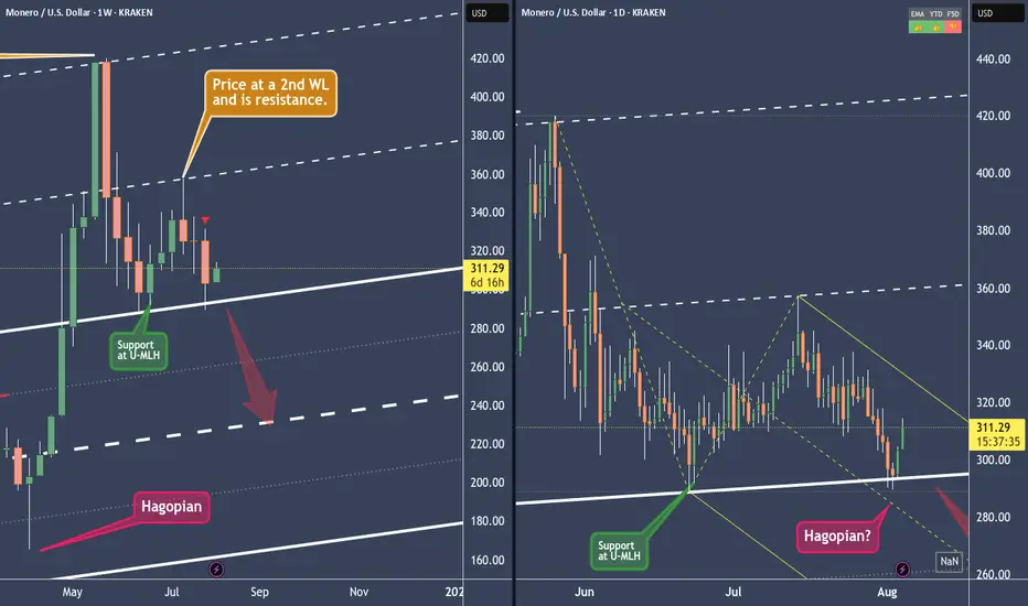 In the last post we see that Monero has the potential to reach the white Centerline at around $240. At least this is the view on the weekly Chart.