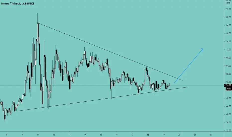 Monero is one of the most used cryptocurrency on the dark web. The coin has a lot of room for an upward moment. XMR is now at the edge of the symmetric triangle and we see a breakout anytime. Bitcoin is stale and alts are pumping, XMR breakout will be huge. Don't miss it out. XMR deserves to be in the top 10.
