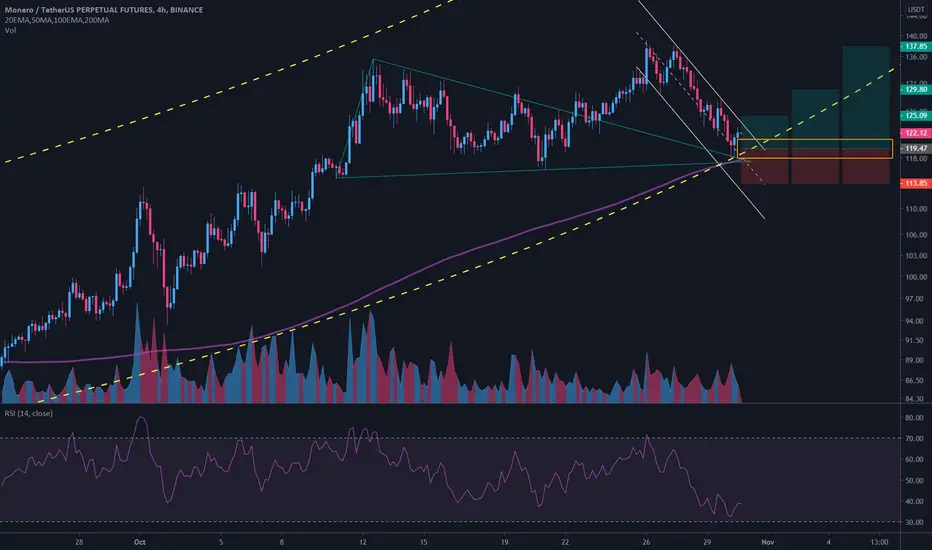 XMR/USDT 4h (Binance Futures) Descending channel near breakout