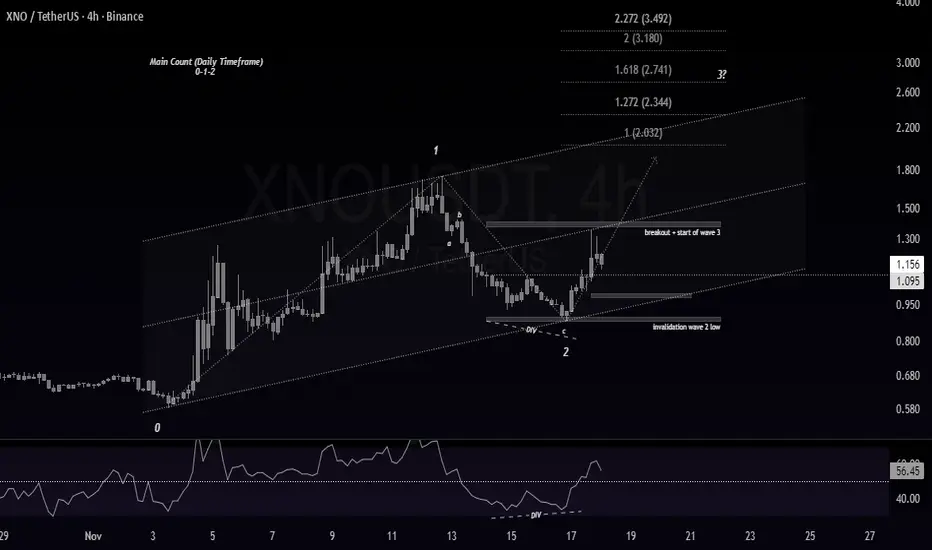 The main wave count is taken from the daily timeframe, where Wave 1 and Wave 2 are already established.