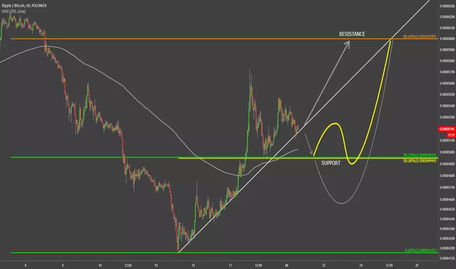 After hitting the 5725 high, XRP has corrected down and fond the support at 4950 satoshis, which is the support level confirmed by two Fibs. The 5k satoshis area, could also be a strong psychological support area, from where Ripple could start moving much higher.