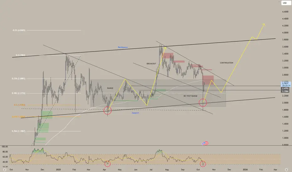 XRP could bounce to form a continuation phase of year long support and resistance levels of an upward bullish channel.