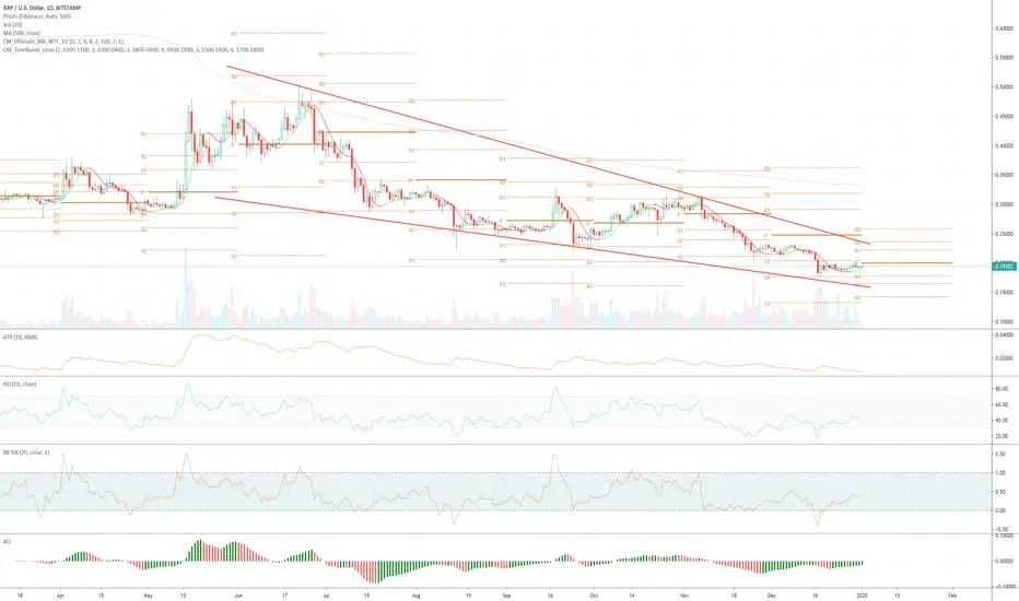 Bullish descending triangle pattern almost fully formed on the XRP/USD Daily. Possibly a breakout and reversal of the downward trend supported by strong fundamentals of XRP and Ripple.  Year end 2019 down 48% with large Brazilian expansion planned by Ripple in 2020.  Is this the bottom?  Happy New Year!!