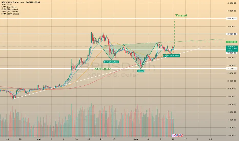 XRPUSD has been trading sideways since the end of July. Recently the asset found support at sma200 and started to form reversal Head and Shoulders pattern. The neckline right now is situated at 3.40000. If the price breaks above this level, then the final target could be around 4.0000. Besides this, the asset firmly holds the trendline, which is a good sign for mid-term buyers.
