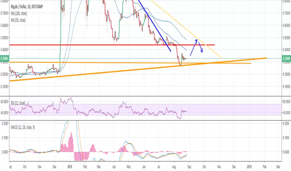 You can see where Ripple has bounced and been supported by this big weekly trendline here at 25 cents. Now at 33 cents, it seems like we will get a continuation move to the 45-50 cent range. I imagine we will get a pullback from there back to the 35 cent area.