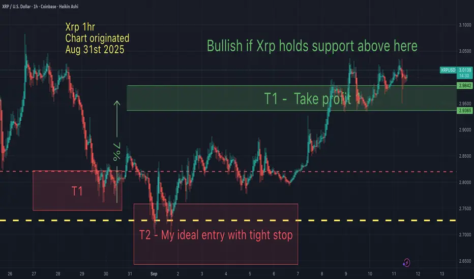 On Aug 31st I suggested that Xrp would drop lower (to T2) then bounce to my 1st take profit. That played out perfectly. Now the question remains, what next?