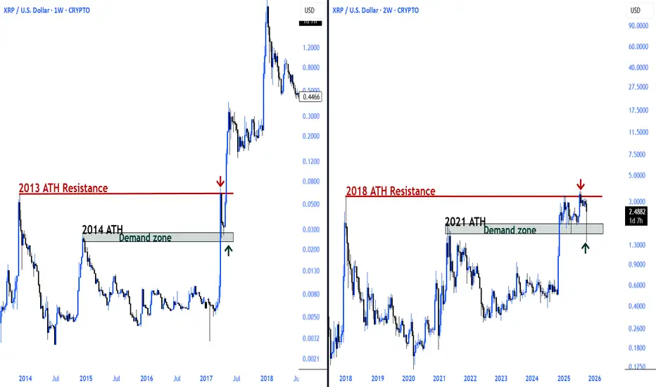 After the major rally in 2017, the price was rejected from the 2013 ATH level and then retested the 2014 ATH level, which had previously acted as resistance. After accumulating strength in this area, it began its parabolic run.