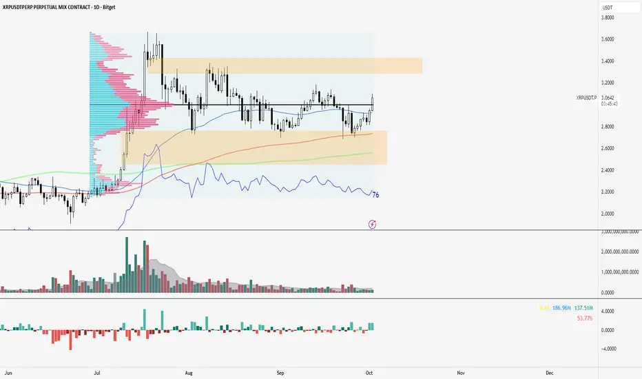 I like the recapture on XRP relative to the POC on the volume profile. I like how it is congruent with emas. Looks pretty strong.