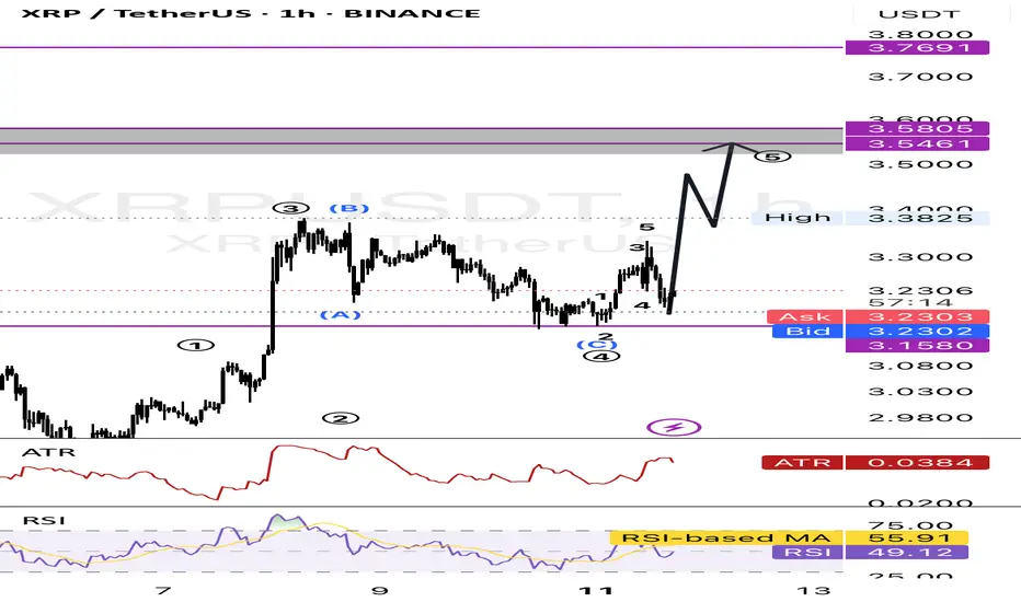 Hello friends, you can see the Ripple chart, which is analyzed on the basis of Elliott waves. The first and second waves have completed, so we are waiting for the Sharpe movement for the third to fifth waves, and the number will be 3.54 to 3.84. Be profitable and successful.