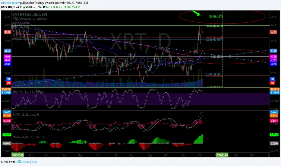 XRT daily has turned down so there is a chance that the lower target for Jan 8 2018 hits at 41.00 FYI on watch