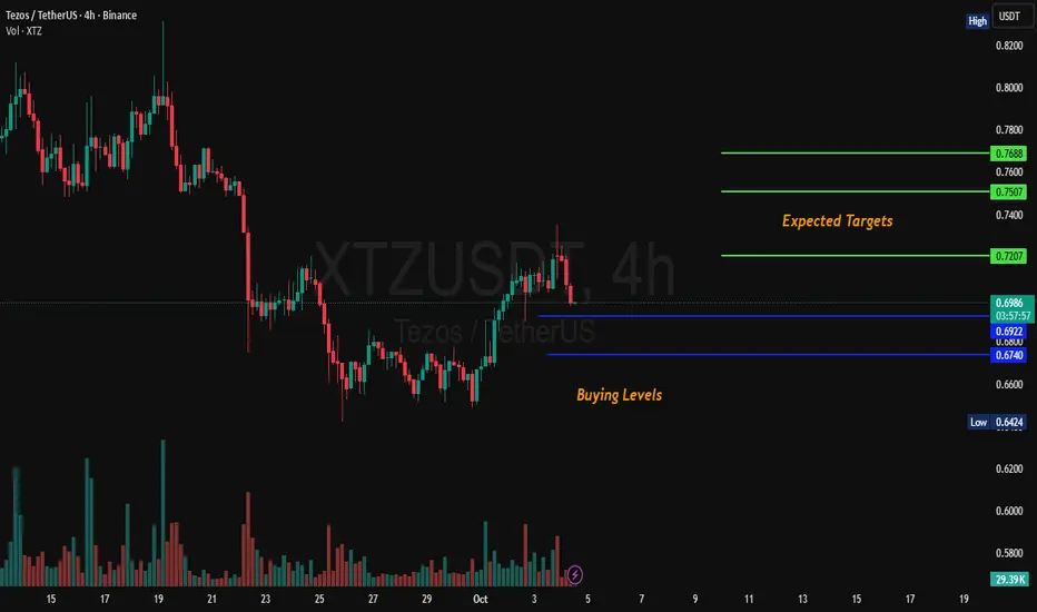 XTZ Has started upward momentum. Key buying area are marked as 0.682 & 0.675. Possible targets are also given on the chart. NFA DYOR