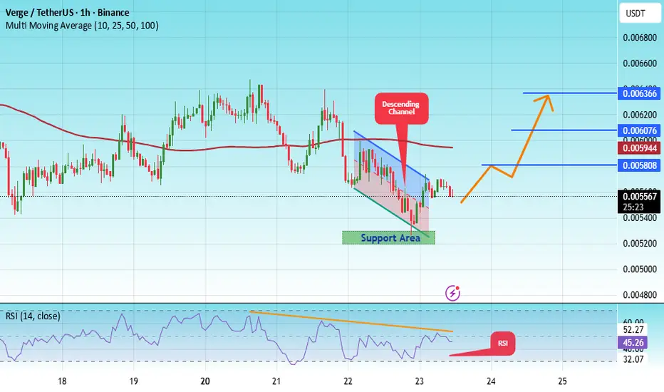 There is a major support area in green at 0.005234, which represents a strong support point.