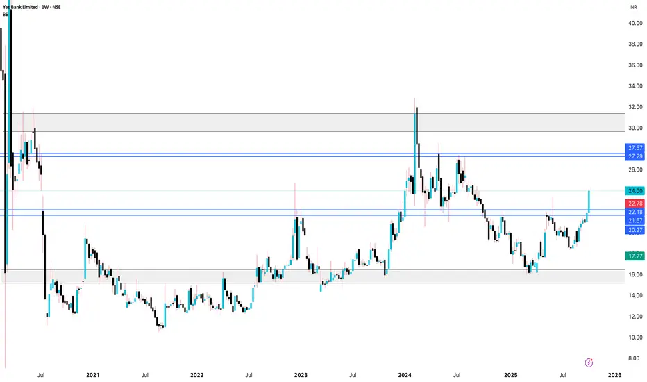 YESBANK witnessed breakout from long consolidation, strong volume , news flow