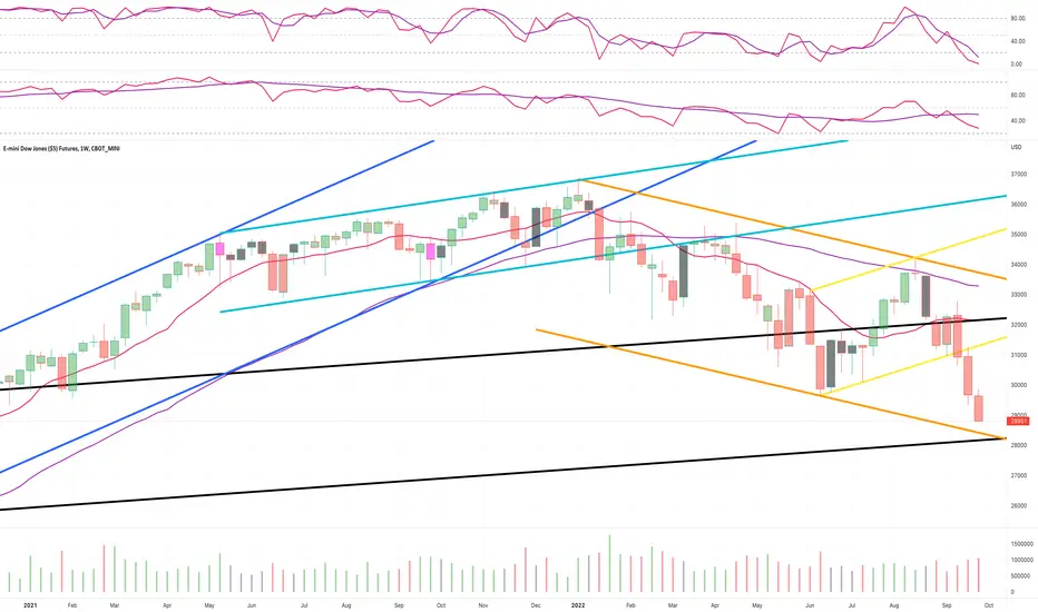Dow futures settled below the June lows this week and are likely headed for the lower $28,XXX handle in the coming week(s).