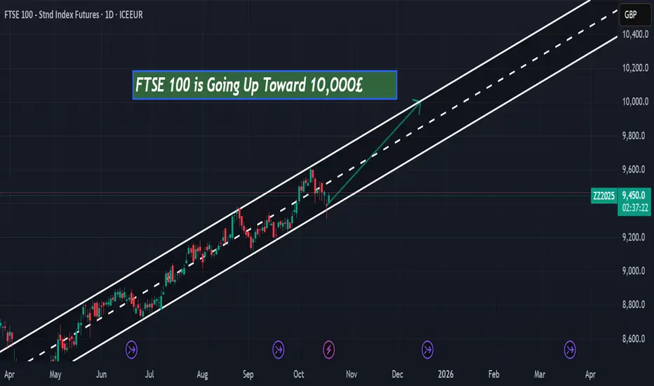 According to my technical analysis, the FTSE 100 has been moving within a well-defined bullish channel since April 2025. The price structure continues to show higher highs and higher lows, confirming sustained buying pressure and a strong uptrend.