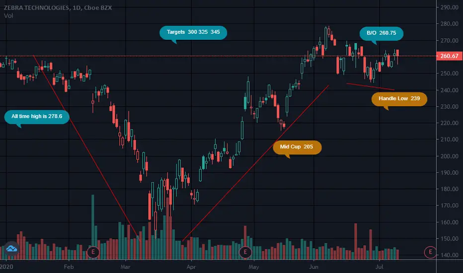 Zbra has passed up this break out point once and pulled back. It is hovering slightly over it on Friday. It is a hypothetical break out of course and the targets are also hypothetical