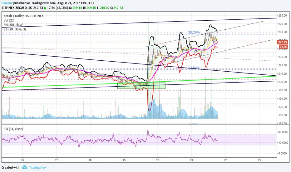 Here is what is happening on the minutes chart for ZEC following the recent breakout, - expect to trend higher within this channel, towards the $300 level.