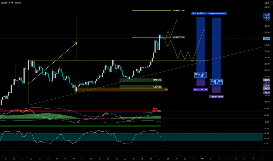 This is flying but reaction on 1.618 fib projection is clear. Let's see is there some pullback before heading towards 2.618 or a real meltdown back testing and consolidation to the breakout level.