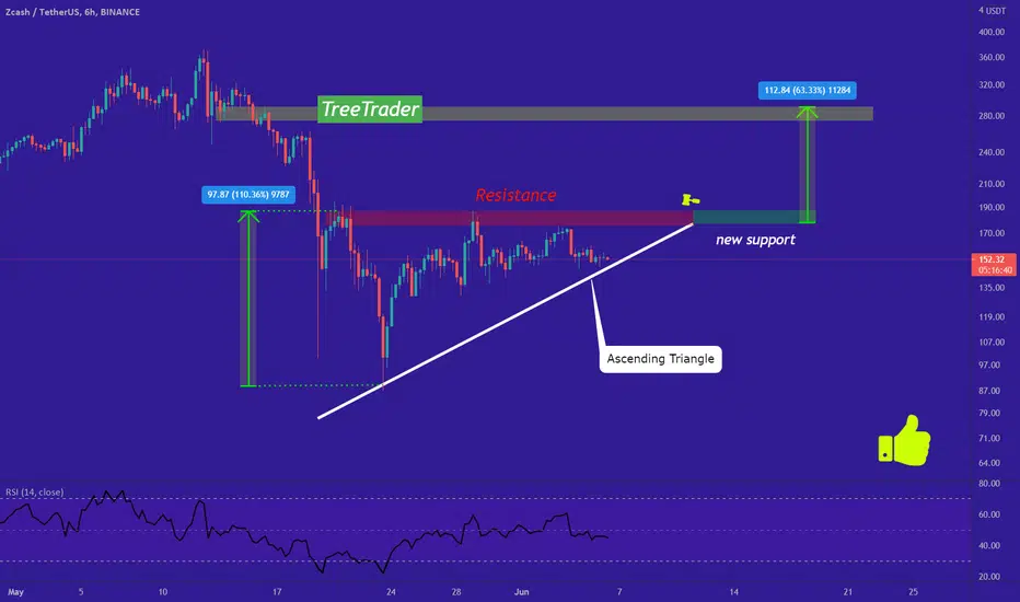 ZEC/USDT Is in an ascending triangle (just like most other coins/tokens) ZEC could break the triangle from this point If the breakout happens price can pump as much as the measured movement(AB=CD)