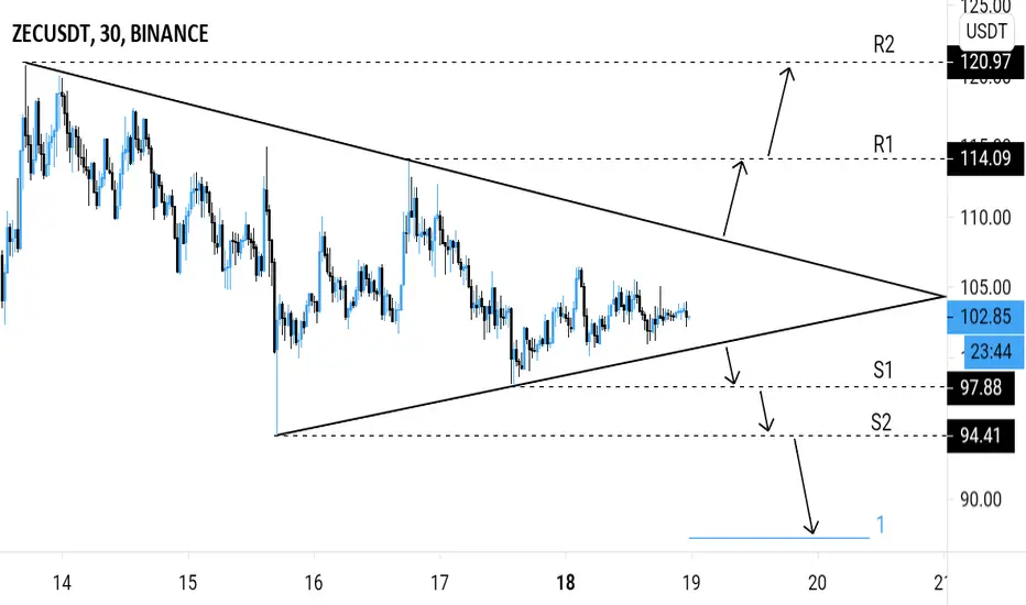 Analysis 🔎: ZENUSDT is consolidating in a symmetrical triangle pattern.