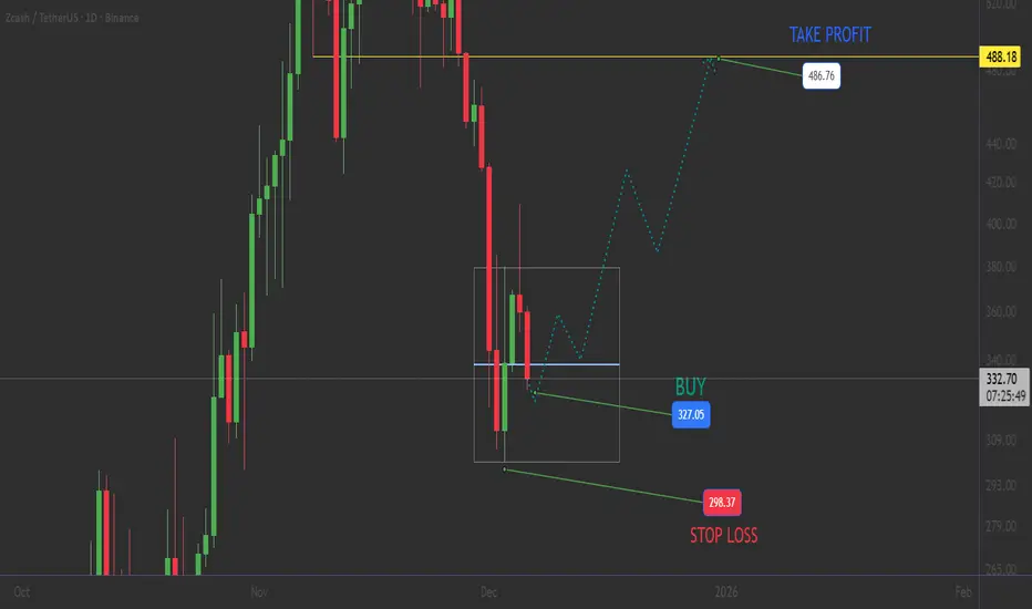 ZCash has completed a classic corrective pattern after the November rally, forming a descending channel with strong support around $298-$327. Price action shows decreasing selling pressure with bullish divergence building on lower timeframes.
