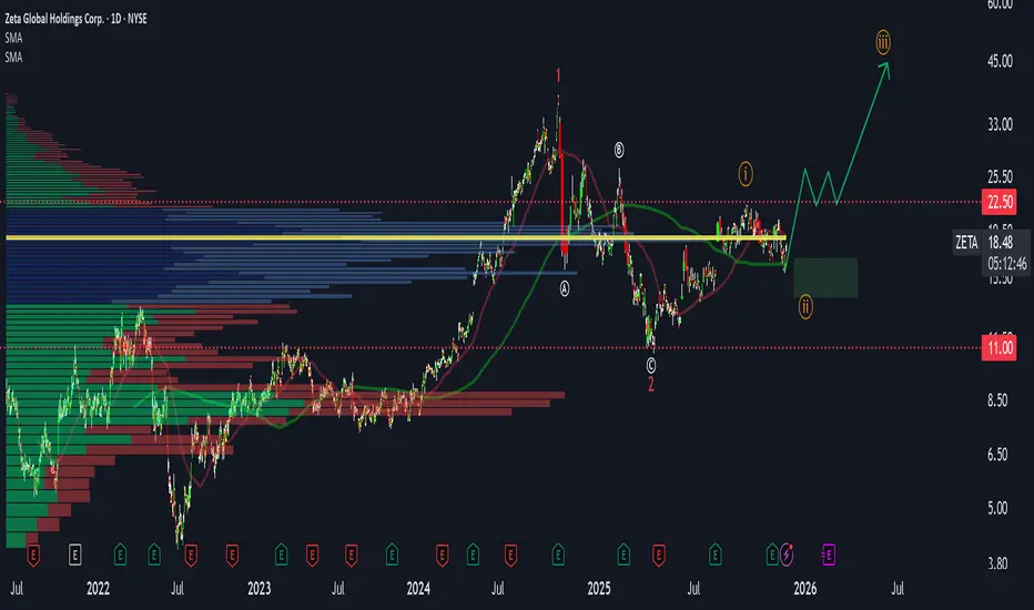 Zeta Global presents a rare combination of improving fundamentals and a potentially completed corrective structure on the chart. Dilution remains a notable risk, but the valuation gap and strong earnings trajectory create an attractive reward to risk scenario.