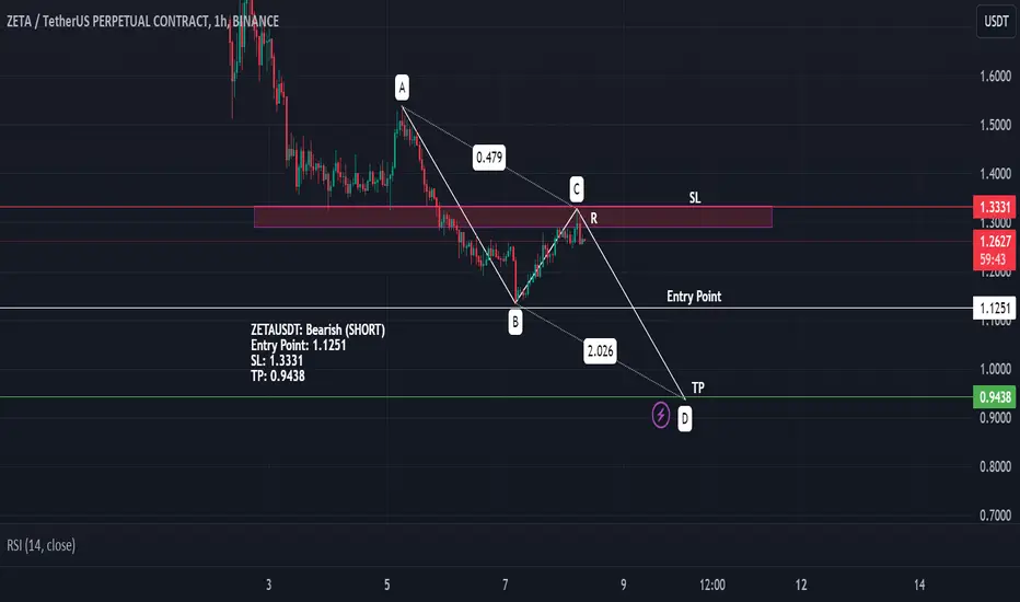 ZETAUSDT: Potential Bearish Trend Ahead (AB=CD Pattern)