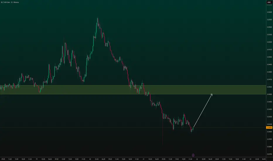 After a significant decline, ZK appears to be finding some stability at these lower levels. The white arrow indicates a potential bounce back towards the highlighted zone.