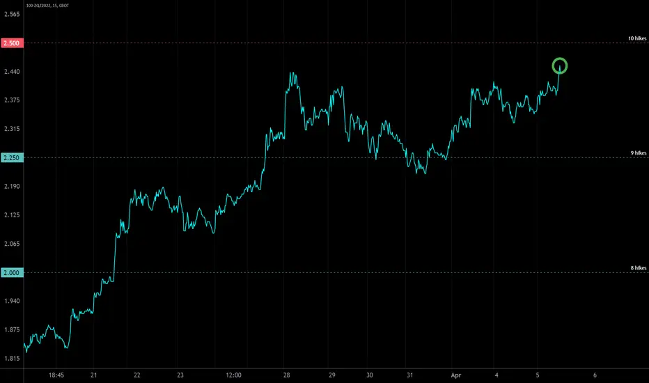 ..(December contracts) are making new lows (chart is inverted) pointing to almost 10 hikes for the year now.
