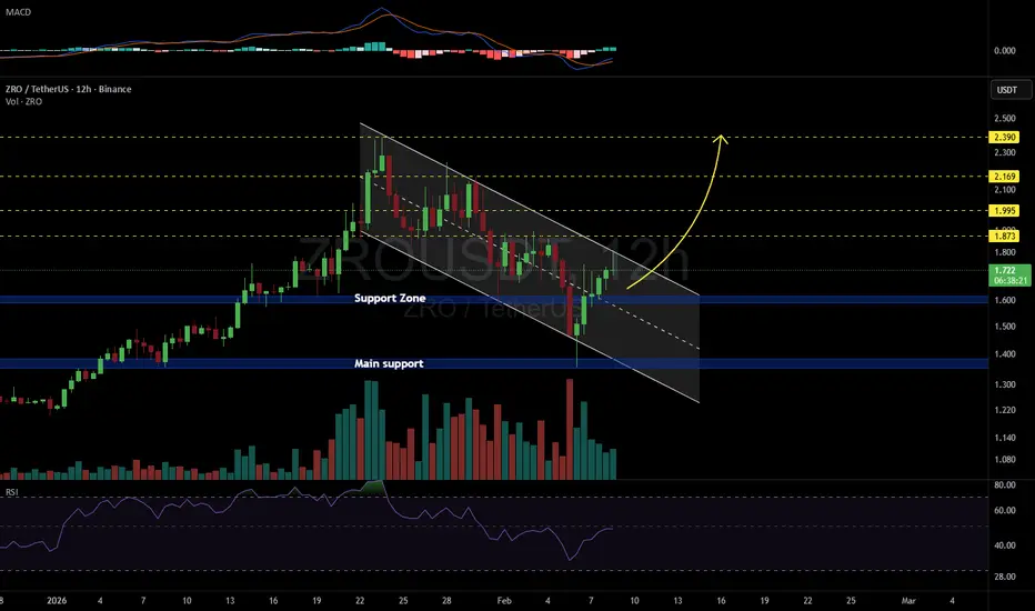 #ZRO is trading within a bullish flag on the 12H timeframe. A small position can be considered at current levels and near the support zones. If price breaks above the flag resistance, the potential upside targets are: