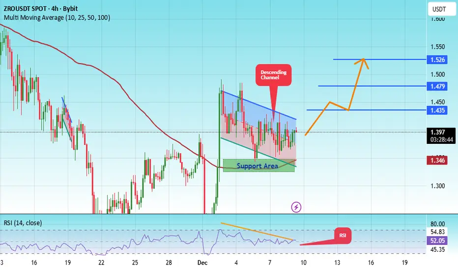 The price is moving in a descending channel on the 1-hour timeframe. It has reached the lower boundary and is heading towards breaking above it, with a retest of the upper boundary expected.