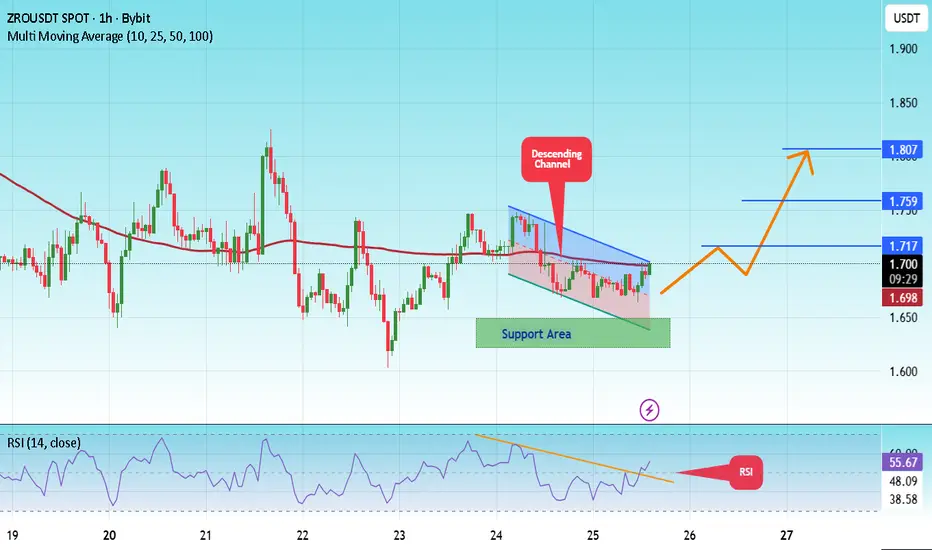 The price is moving in a descending channel on the 1-hour frame and is expected to break and continue upward.